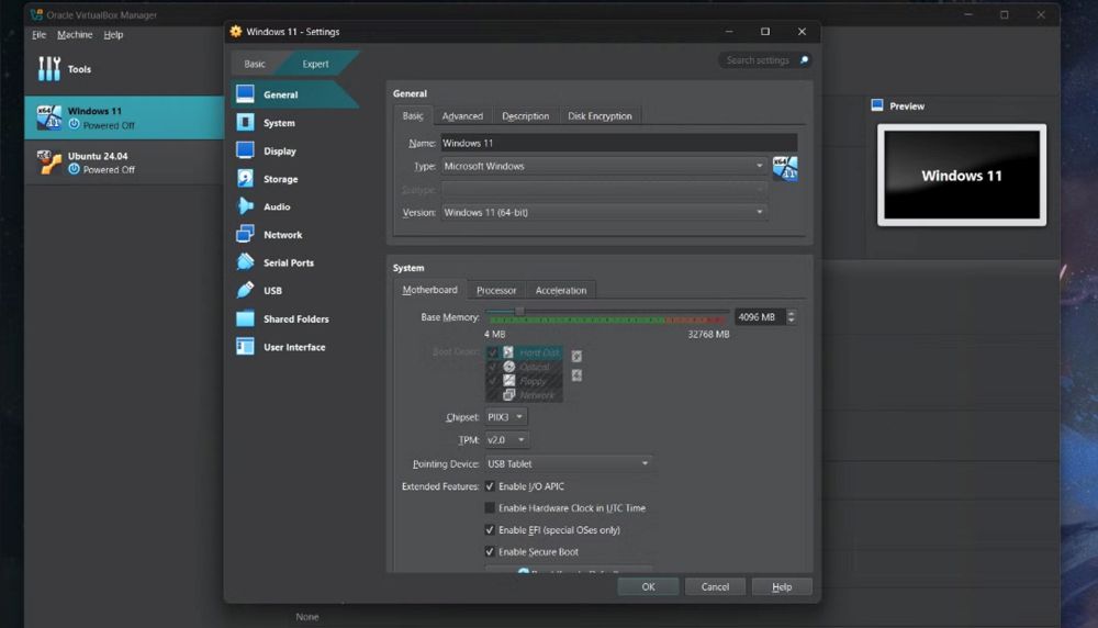 อินเทอร์เฟซของ VirtualBox ใช้งานง่าย ป้ายกำกับชัดเจน และมีภาพตัวอย่างช่วยให้ค้นหาตัวเลือกต่างๆ ได้สะดวก อย่างไรก็ตาม Windows VM อาจติดปัญหาการติดตั้งในบางครั้ง แต่สามารถแก้ไขได้ด้วยการรีสตาร์ท