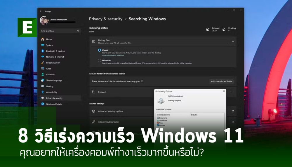 Windows เก็บดัชนีไฟล์ผู้ใช้ส่วนใหญ่ของคุณอย่างต่อเนื่อง ซึ่งช่วยให้คุณใช้แถบค้นหาที่ด้านล่างของหน้าจอเพื่อค้นหาไฟล์ของคุณได้เร็วขึ้น อย่างไรก็ตาม หากคุณไม่ใช้ฟีเจอร์นี้บ่อยๆ วิธีที่ดีในการประหยัดทรัพยากรคือการหยุดการจัดทำดัชนีไฟล์ วิธีการทำดังนี้