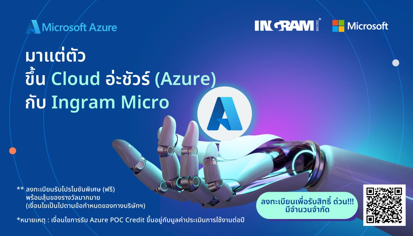 สำหรับผู้สนใจที่จะรับสิทธิโปรโมชั่นพิเศษจากทาง Ingram Micro เกี่ยวกับ Microsoft Azure สามารถลงทะเบียนในแบบฟอร์มที่ลิงก์ด้านล่างนี้ พร้อมร่วมลุ้นไปกับของรางวัลพิเศษ (ฟรี) (เงื่อนไขเป็นไปตามนโยบายของทาง Ingram Micro)