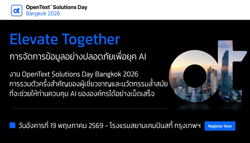 - Smart Archiving, Smarter Insights: Turn Information into Intelligence with OpenText Information Archive (เปลี่ยนข้อมูลที่จัดเก็บให้เป็นขุมทรัพย์ทางปัญญา)